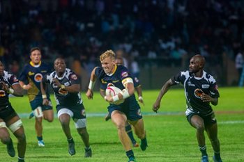 CAPTION: Madibaz centre Chris Hollis goes on a run in the Varsity Shield rugby match against Walter Sisulu University early this year. The teams will meet in the final match of the annual Eastern Cape intervarsity at Nelson Mandela University in Port Elizabeth on Saturday. Photo: Carlo Jonkerman