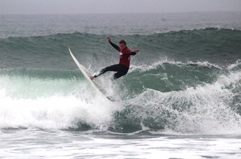 CAPTION: Kyle Ruben shows his style for Billabong Madibaz in the University Sport South Africa surfing championships in Port Elizabeth last weekend. Madibaz were runners-up overall, just eight points behind UCT. Photo: Supplied