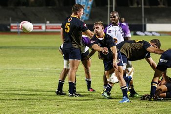 CAPTION: FNB Madibaz's Dundre Maritz passes the ball during their Varsity Cup rugby match against NWU-Pukke at Madibaz Stadium in Port Elizabeth on Monday. Photo: Asem Engage
