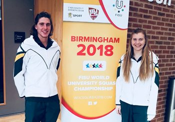 CAPTION: Madibaz squash stars Hayley Ward (right) and John Kuhn  were part of the South African team which competed in the World University Championships in Birmingham, England, earlier this month. Picture: Supplied